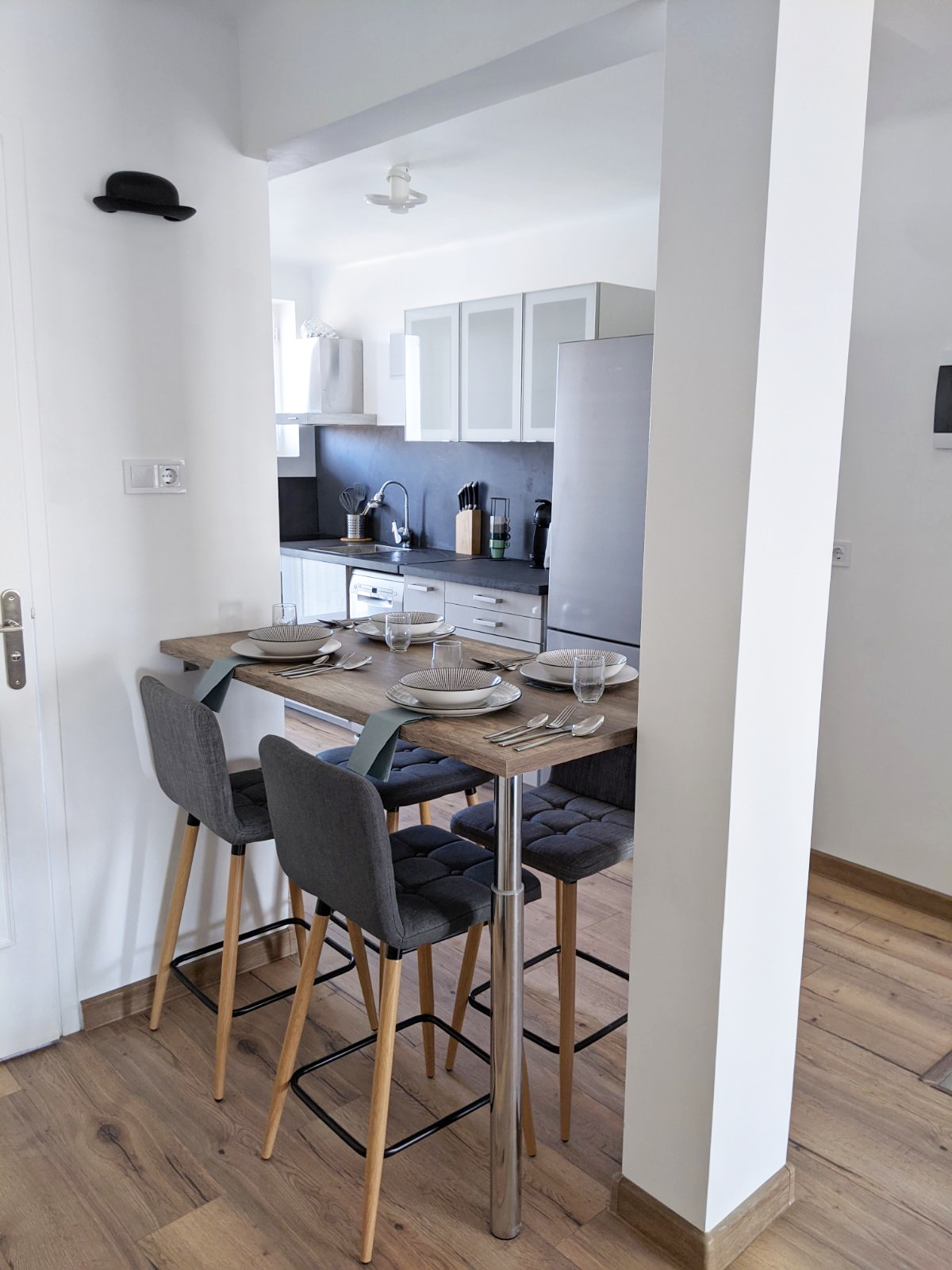 Michel et Elena sont géniaux ! Envoyez des instructions proactives et un manuel d’instructions utile pour une bonne arrivée et des conseils sur la région. Appartement est vraiment magnifique ! Assez spacieux et calme. Balcon avec vue sur la mer et coucher de soleil, avec 2 entrées (depuis le salon et depuis la chambre). Il y a aussi une véranda sur le balcon pour quand il fait un peu plus frais. Belle cuisine complète pratique avec lave-vaisselle, four, cafetière Dolce Gusto et grand réfrigérateur+congélateur, nous venons de manquer un micro-ondes. Une belle salle de bain avec une grande douche ! Toilettes dans une pièce séparée. Vraiment un beau séjour, le seul inconvénient est qu’il nous manque déjà !